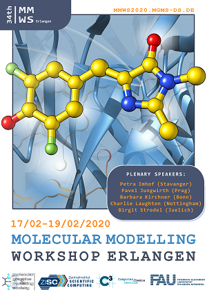 The 34th Molecular Modeling Workshop 2020 (February 17th to 19th) in Erlangen provides research and graduate students, and new postdoctoral scientists with the perfect opportunity to present their research to the molecular modeling community. Scientists at the beginning of their academic career are able to meet new colleagues in academia and industry, discuss their research topics and gain valuable feedback.